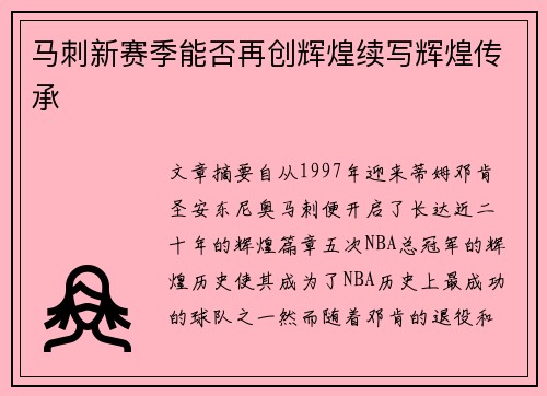 文章摘要:自从1997年迎来蒂姆·邓肯,圣安东尼奥马刺便开启了长达近二十年的辉煌篇章,五次NBA总冠军的辉煌历史使其成为了NBA历史上最成功的球队之一。然而,随着邓肯的退役和球队重建,马刺在过去的几年...