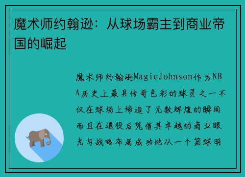 魔术师约翰逊(Magic Johnson),作为NBA历史上最具传奇色彩的球员之一,不仅在球场上缔造了无数辉煌的瞬间,而且在退役后凭借其卓越的商业眼光与战略布局,成功地从一个篮球明星转型为全球商业帝国...